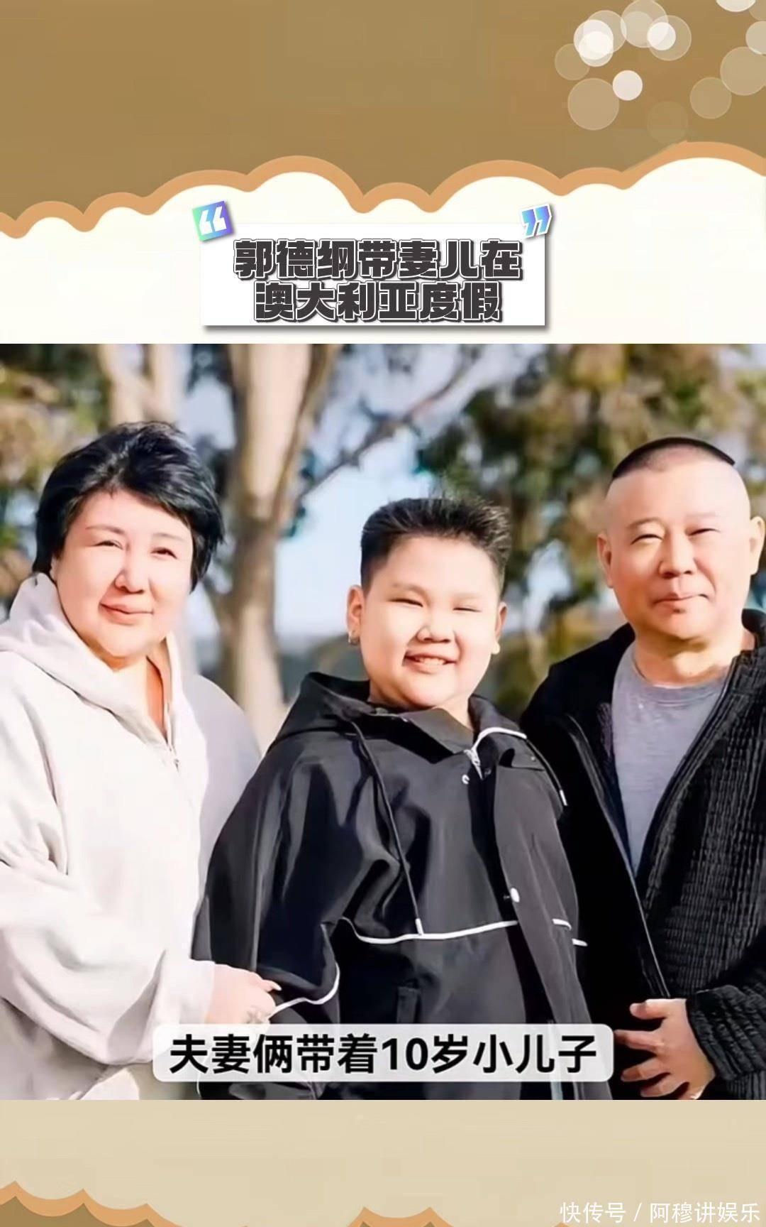 10月30日,郭德纲在个人社交账号晒出全家在澳大利亚游玩的照片。照片里郭德纲和妻子王惠站在儿子郭汾阳两侧,一家人对着镜头笑得特别开心。郭汾阳站在爸妈中间,身材看起来比父母还要魁梧。这张合影引起不少网友讨论,大家都在说这孩子长得真壮实。